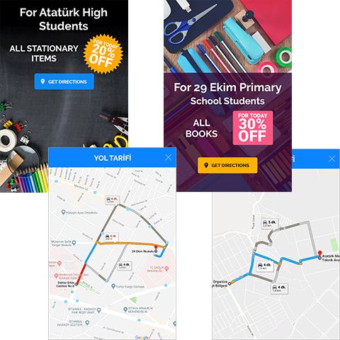 With the THEADX Near Places Targeting feature, you can target the addresses of schools located near your stationery individually, and if the number of schools is high, you can target the students who are your potential customers with special messages for each school students.
